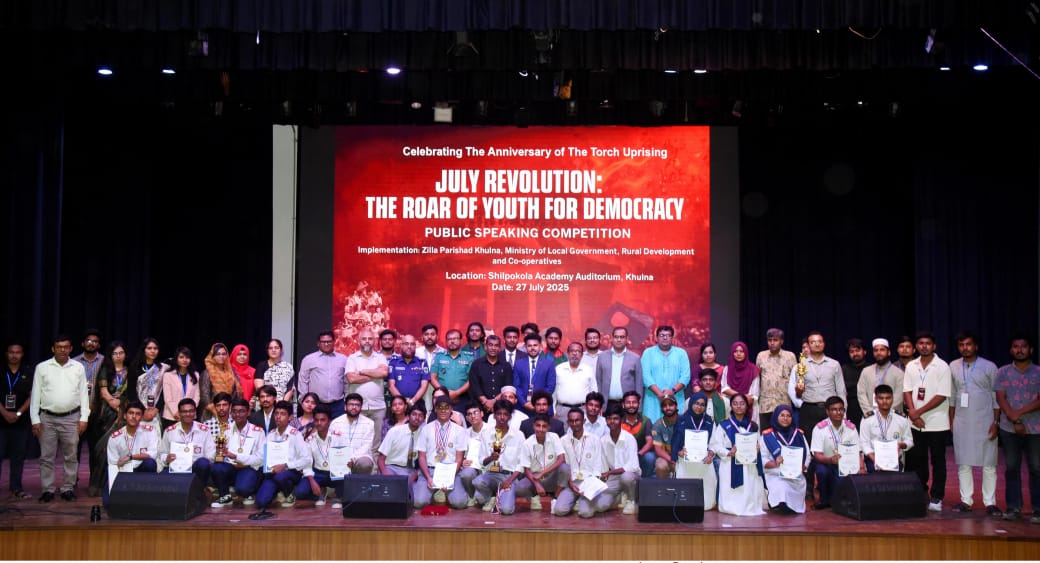 আজ ২৭ জুলাই (রবিবার) বিকেলে খুলনা জেলা শিল্পকলা একাডেমি মিলনায়তনে খুলনা জেলা প্রশাসনের জুলাই উদযাপন প্রোগ্রাম কমিটি আয়োজিত ‘জুলাই বিপ্লব: গণতন্ত্রের জন্য তরুণদের গর্জন’ শীর্ষক আন্তঃবিদ্যালয় বক্তৃতা প্রতিযোগিতার পুরস্কার বিতরণী অনুষ্ঠানে প্রধান অতিথির বক্তব্যে এসব কথা বলেন।