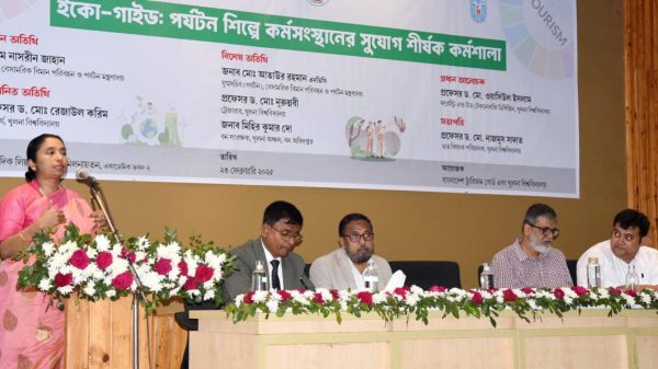 খুবি প্রতিনিধি- খুলনা বিশ্ববিদ্যালয়ে‘ইকো-গাইড: পর্যটন শিল্পে কর্মসংস্থানের সুযোগ’ শীর্ষক অর্ধদিবস কর্মশালা অনুষ্ঠিত হয়েছে। রবিবার (২৩ ফেব্রুয়ারি) বিশ্ববিদ্যালয়ের একাডেমিক ভবন-২ এর সাংবাদিক লিয়াকত আলী মিলনায়তনে এ কর্মশালাটি অনুষ্ঠিত হয়। এতে প্রধান অতিথি আরো পড়ুন...